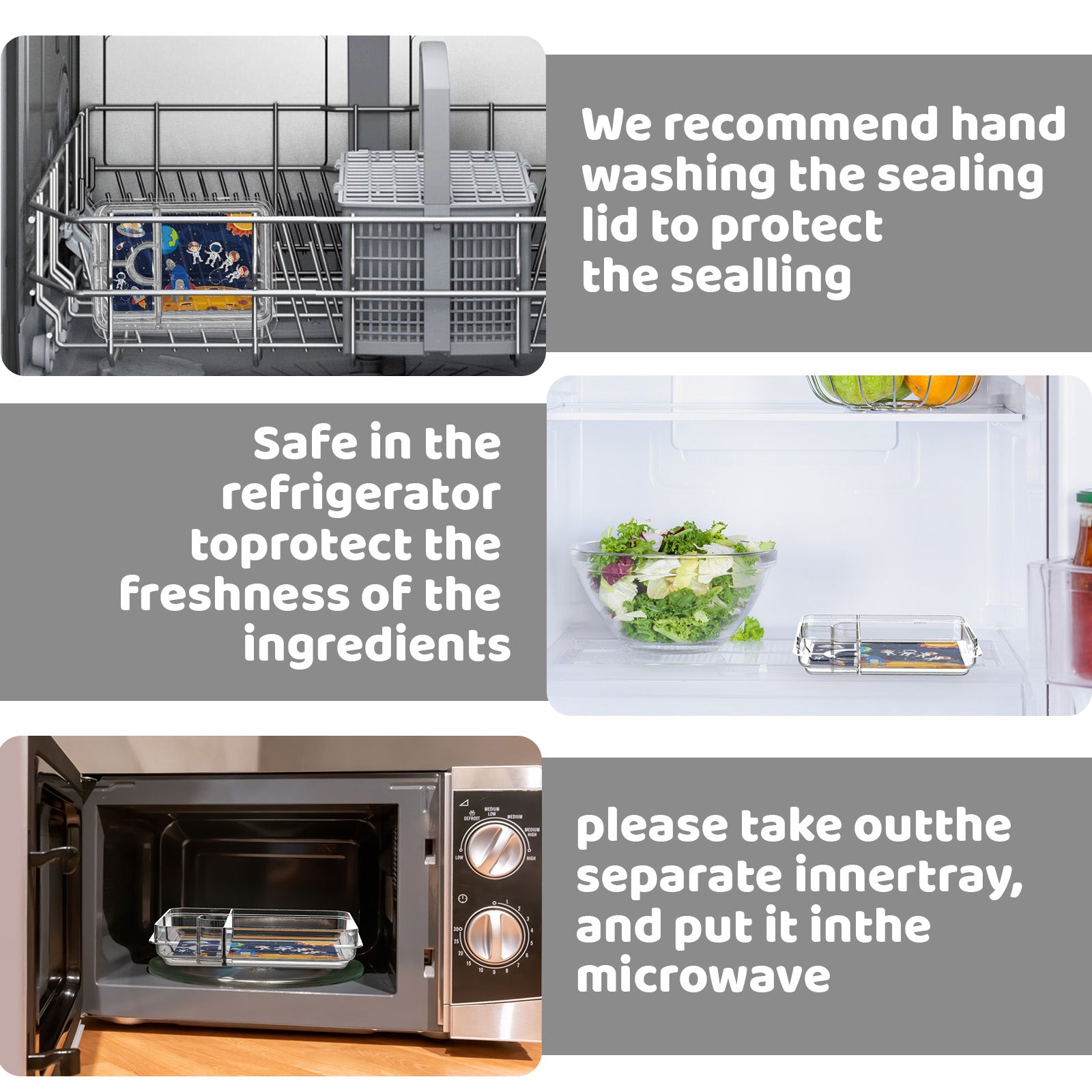 - Easy to Use: The inner tray is microwave-safe, dishwasher-safe, refrigerator-friendly, and freezer-safe – perfect for everyday use.