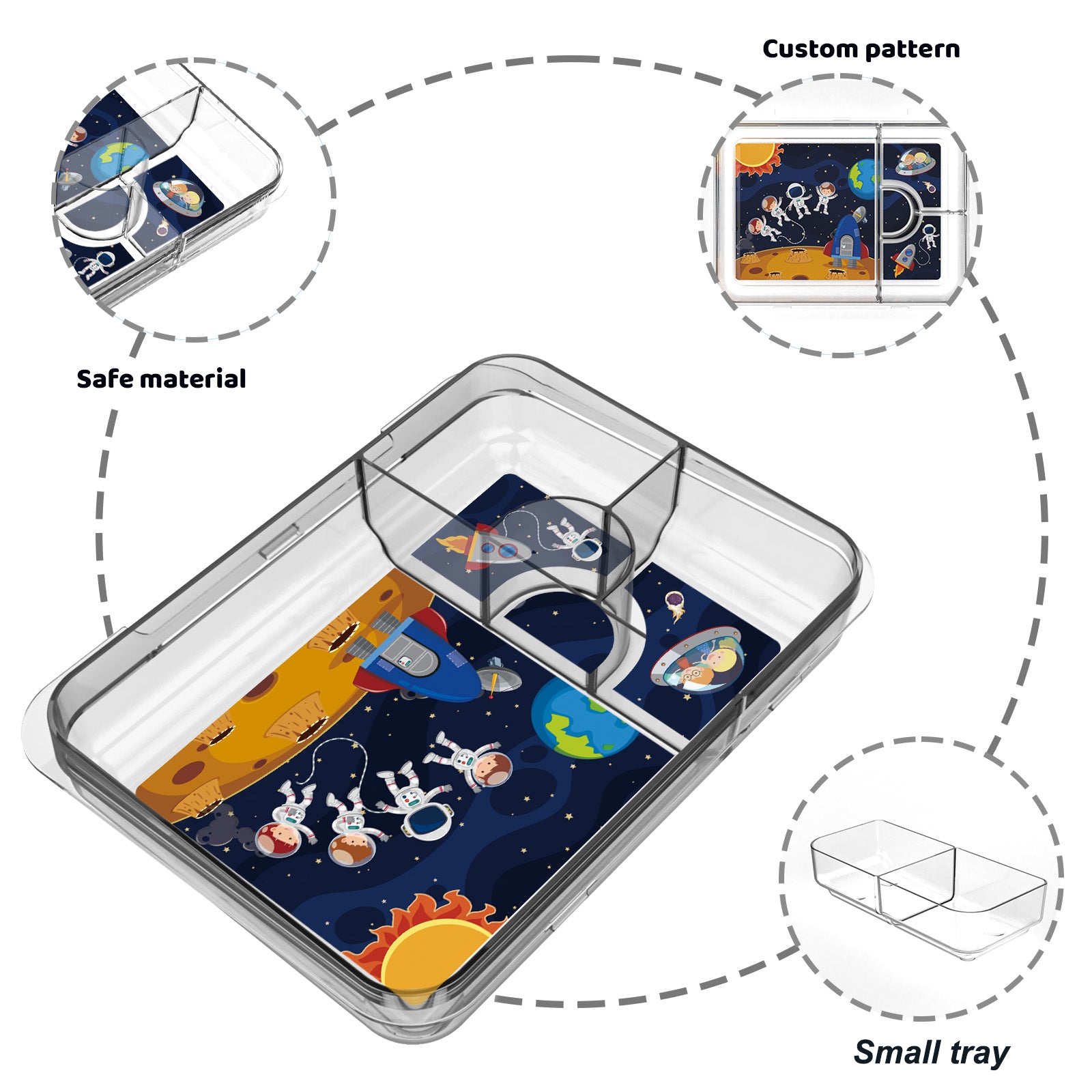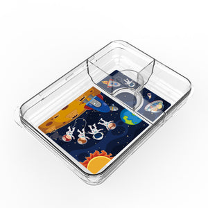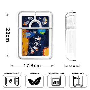 Our Joy Bento Galaxy Tray takes little astronauts on a cosmic journey every lunch break. Featuring a vibrant space-themed design with rockets, planets, and friendly explorers, it makes healthy eating fun and imaginative for kids.