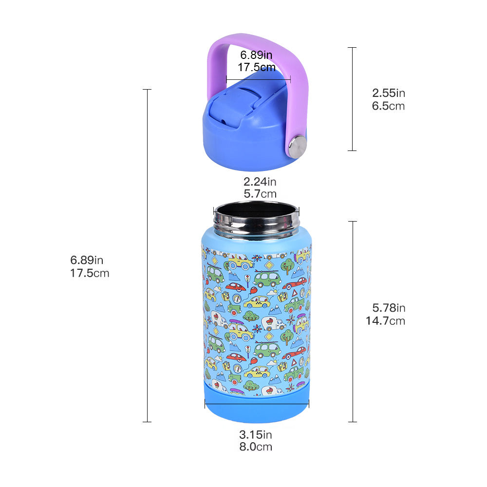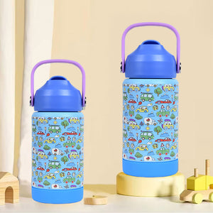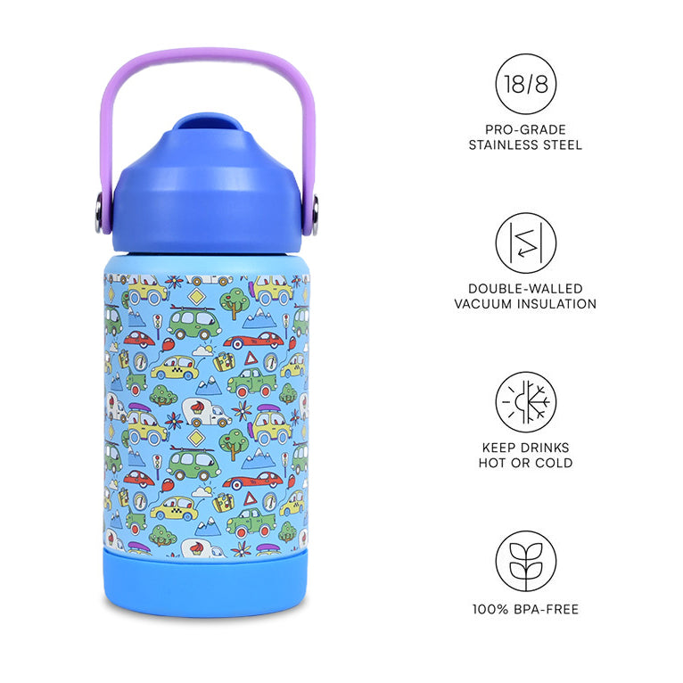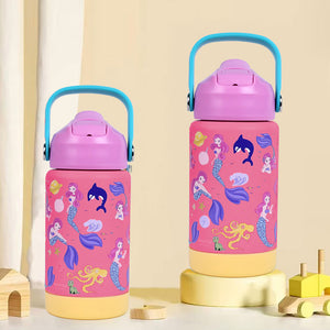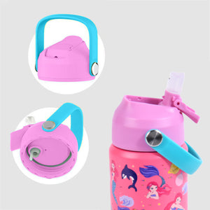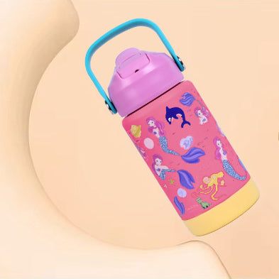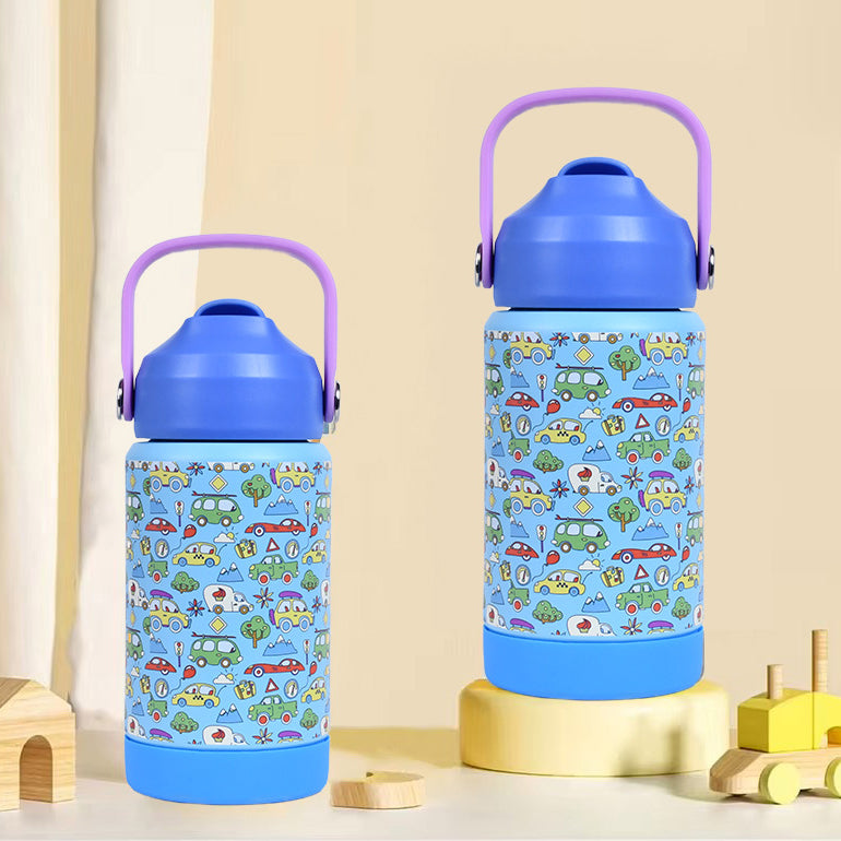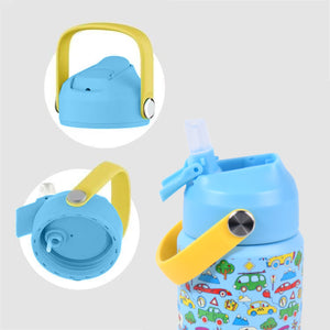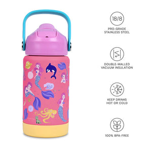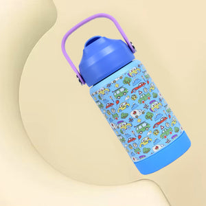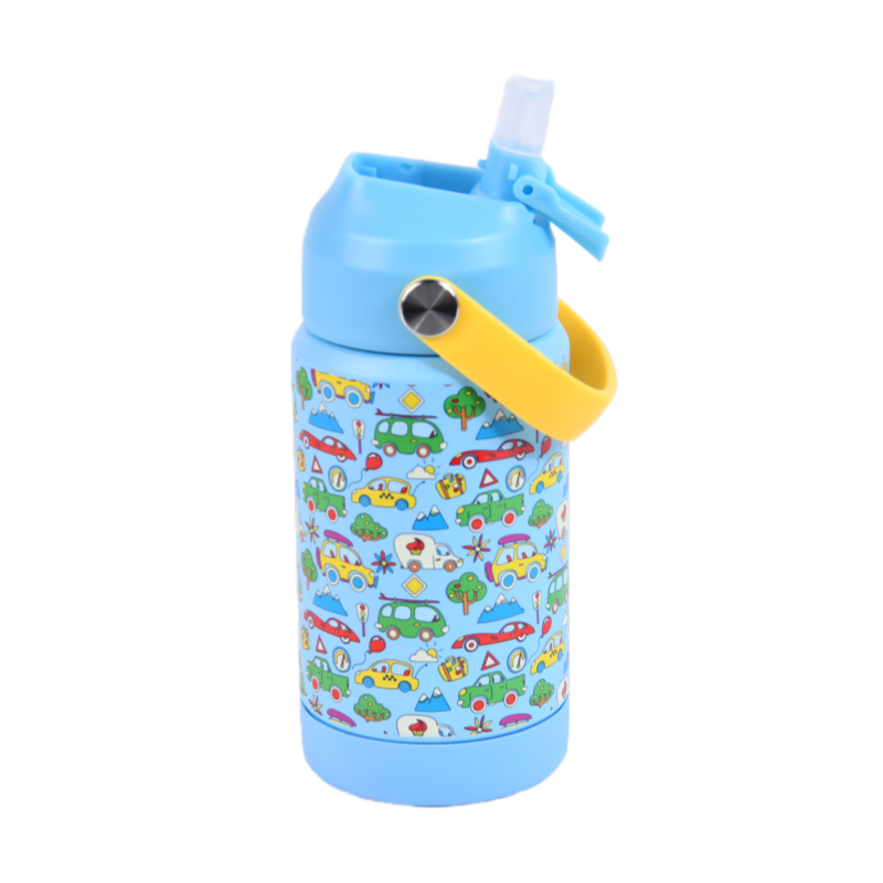 The flip-top straw lid features a soft silicone spout, making it easy for little hands to open and sip from. The ergonomic, flexible handle ensures a comfortable carry. Available in vibrant colour combos, it’s a bottle that kids love and parents trust.