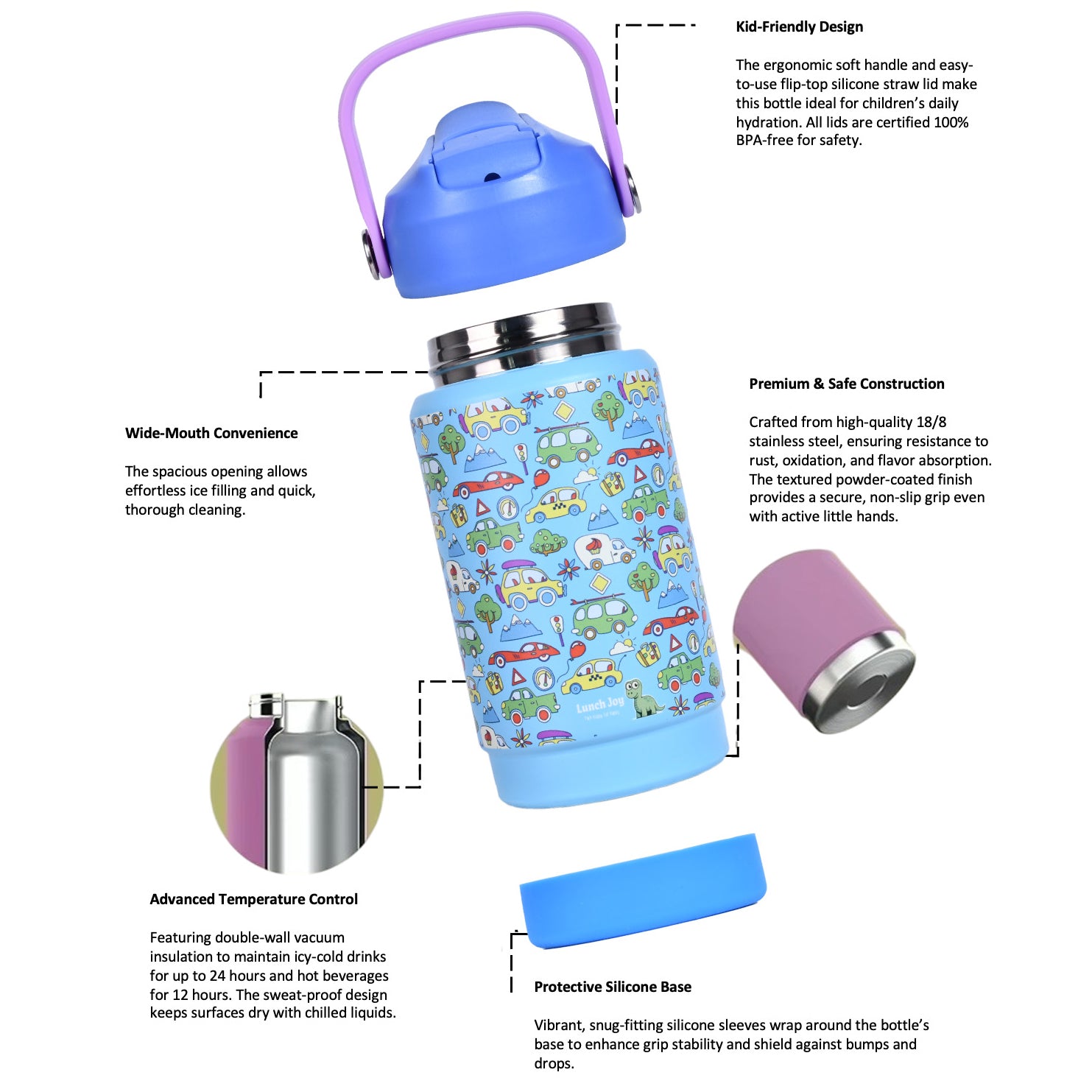 Stay refreshed anywhere with the Lunch Joy JoySip Flexi Thermo Bottle – the ultimate kids’ insulated water bottle for school, daycare, sports, or family outings. Crafted from premium 18/8 pro-grade stainless steel with double-wall vacuum insulation, it keeps drinks icy cold for up to 24 hours or warm for 12 hours. The sweat-proof exterior means no messy condensation in bags, while the wide-mouth opening makes filling and cleaning effortless.