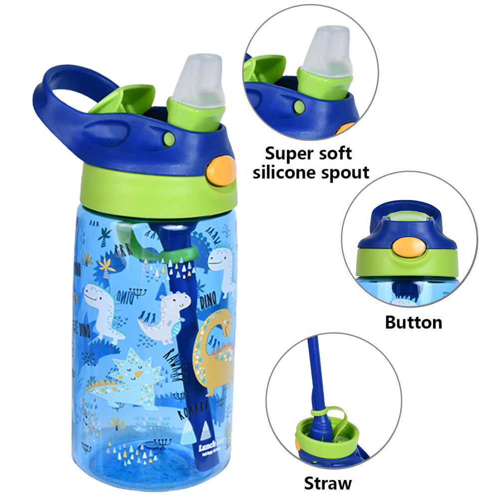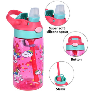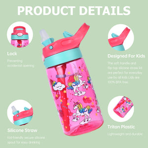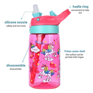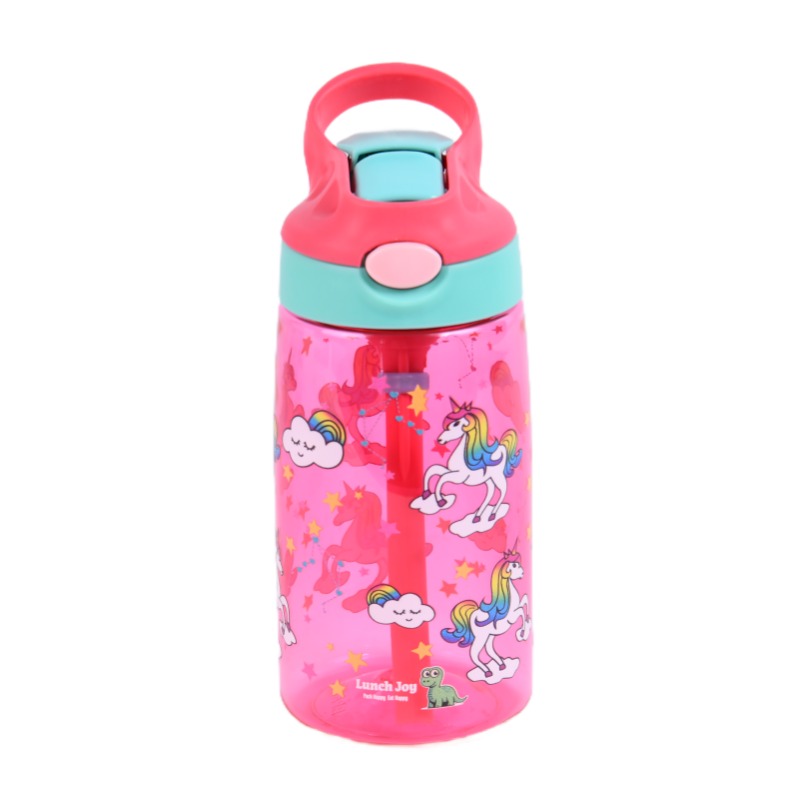 Hydration made easy, safe, and fun! The Lunch Joy JoySip Kids Tritan Bottle is the perfect everyday water bottle for school, play, and family adventures. Made with durable, lightweight Tritan plastic, it’s tough enough for active kids while staying gentle and safe (100% BPA-free). The flip-top straw lid with a secure lock button prevents accidental spills, while the super-soft silicone spout makes sipping easy and comfortable. Designed for kids and it’s just the right size for little hands to hold, with playful Unicorn and Dinosaur prints, kids will love.